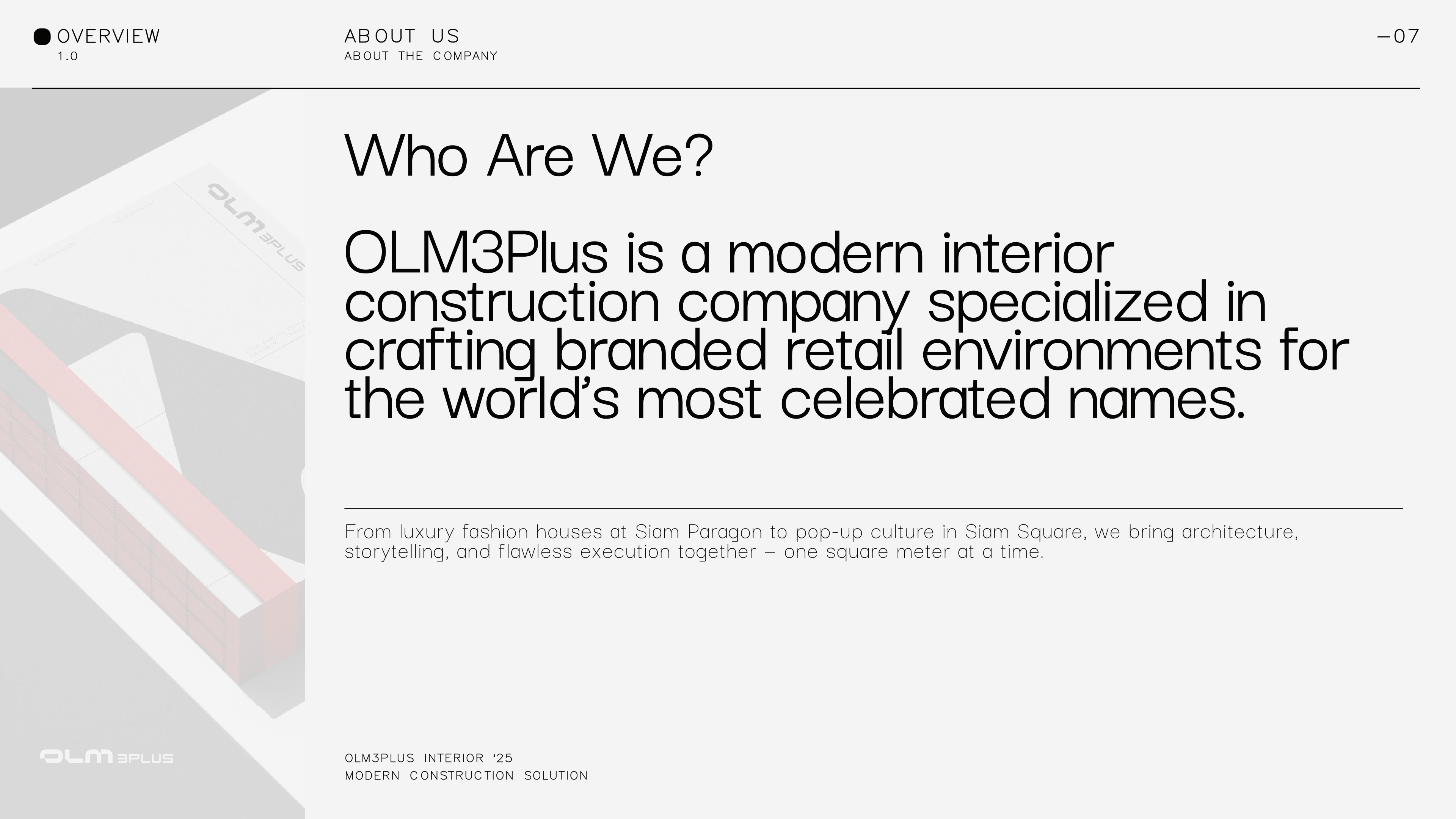 OLM3Plus is a modern interior construction company specialized in crafting branded retail environments for the world’s most celebrated names.